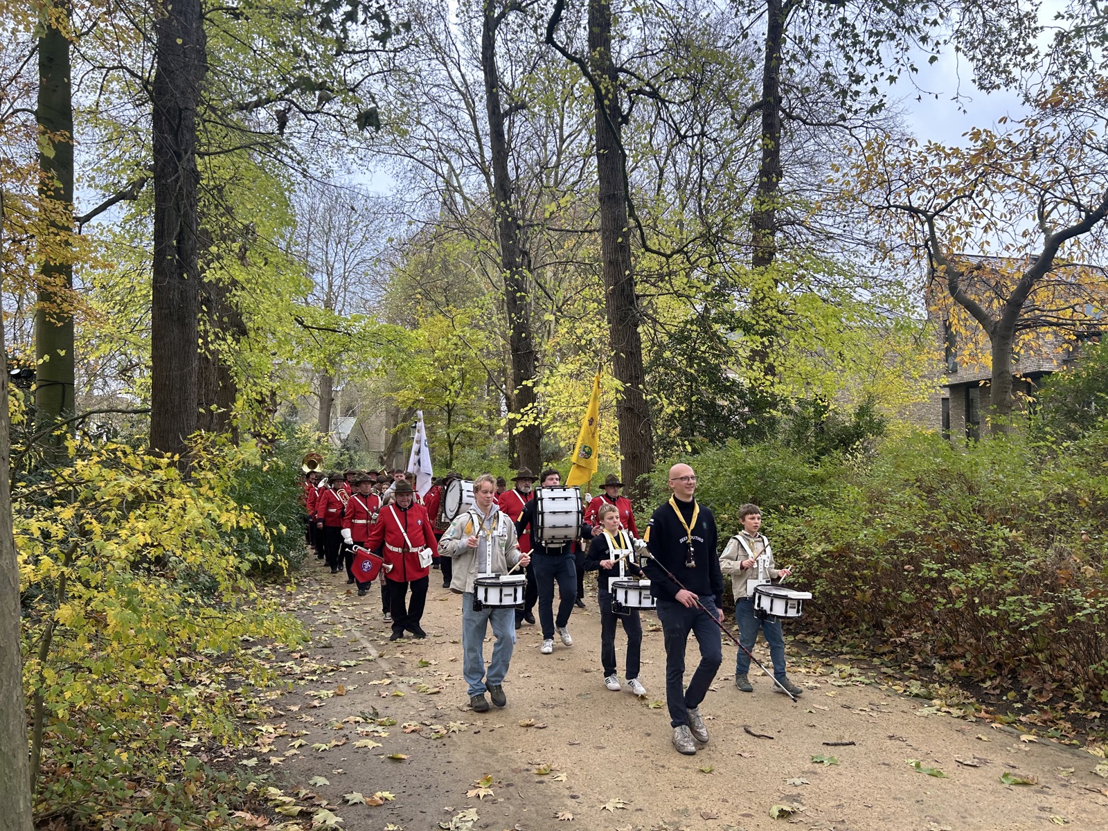 In zijn toespraak stond Baptist stil bij het onverwachte overlijden van Dirk Viaene, jarenlang muzikant en geëngageerd scout. Zijn liefde voor muziek, zijn trouw aan de harmonie en zijn verbondenheid met de groep werden met veel respect herdacht.